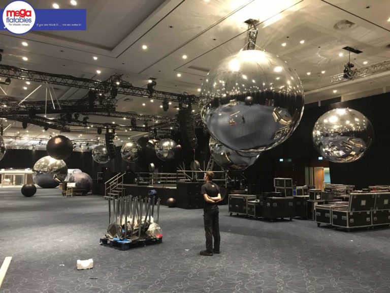 Our event management service includes everything from creative planning and logistics to on-site setup, supervision, and de-rigging. Our team will be present onsite to assist with installation and ensure everything runs smoothly throughout your event. Whether you’re working with a tight deadline or a complex venue setup, we have the knowledge and experience to ensure your inflatable chrome spheres are installed safely, securely, and in exactly the right position for maximum visual impact. We can even coordinate lighting to enhance the reflective effects of your spheres, creating a show-stopping feature that elevates your entire event.